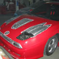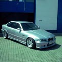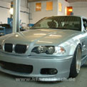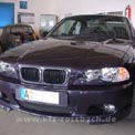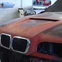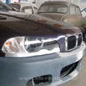 Hier wird die Front komplett im E46-Stil umgebaut, d.h. um die Scheinwerfer einpassen zu können, müssen die Halterungen, die Kotflügel und die Motorhaube sowie die E46-Stossstange in aufwändiger Handarbeit angepasst werden.